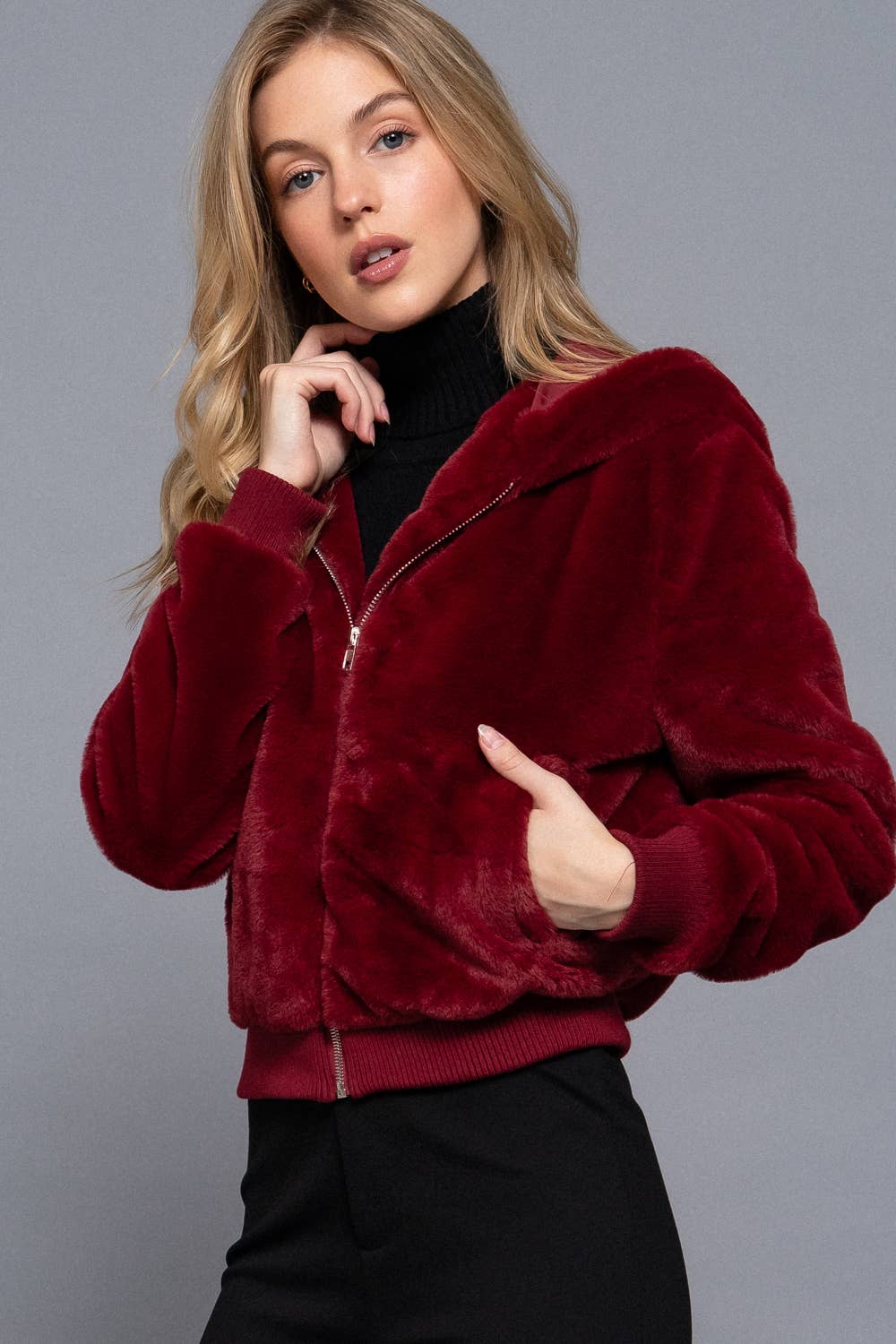 LONG SLEEVE ZIP UP WITH HOODIE FAUX FUR JACKET